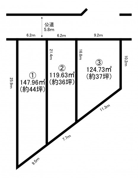 - 北側 公道5.8m 間口約6.2m