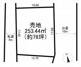 西側 私道4m 間口約17.4m - 土地面積