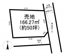 南側 私道4m 間口約12.4m - 土地面積