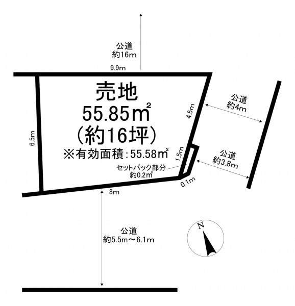 北東側 公道16m 間口約9.9m - 土地面積