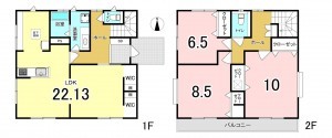 - システムキッチン、カウンターキッチン、洗浄便座、ウォークインクローゼット、駐車場2台分、駐車場3台分、床下収納、トイレ2箇所