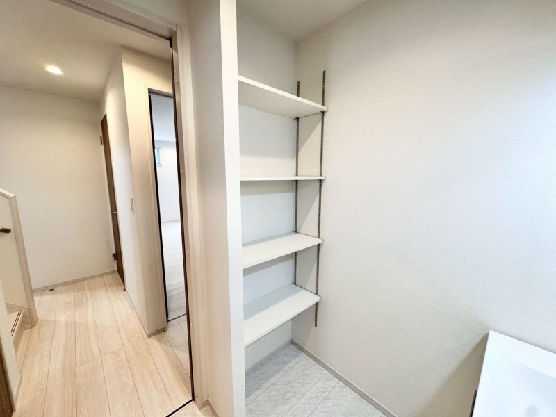 - システムキッチン、カウンターキッチン、食器洗浄乾燥機、シャンプードレッサー、洗浄便座、浴室乾燥機、複層ガラス、モニタ付インターホン、駐車場2台分、床下収納、トイレ2箇所、小屋裏収納、パントリー、リネン棚