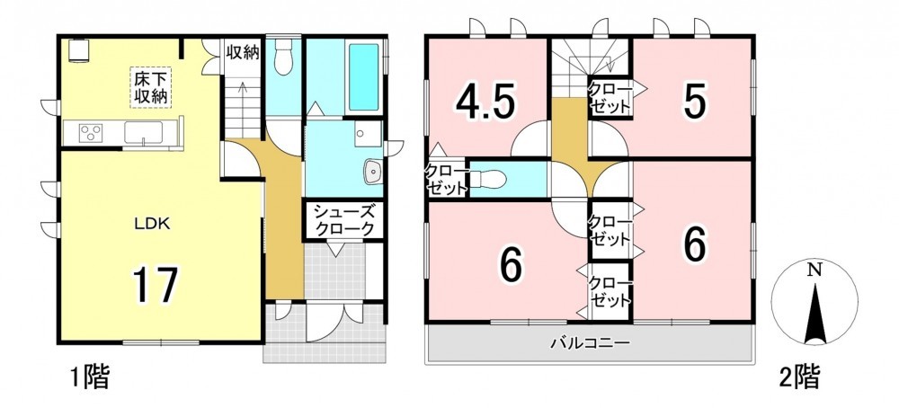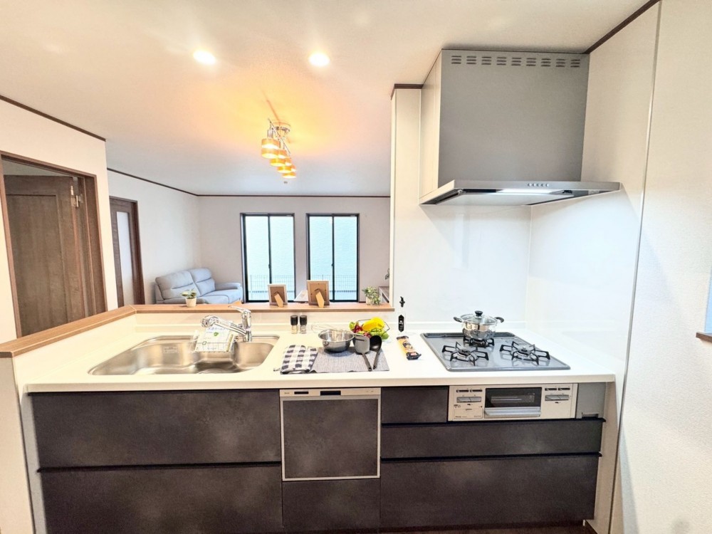 - システムキッチン、カウンターキッチン、シャンプードレッサー、洗浄便座、複層ガラス、モニタ付インターホン、駐車場2台分、床下収納、トイレ2箇所、シューズクローク