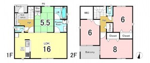 - システムキッチン、カウンターキッチン、シャンプードレッサー、洗浄便座、浴室乾燥機、複層ガラス、ルーフバルコニー、ウォークインクローゼット、モニタ付インターホン、駐車場2台分、床下収納、トイレ2箇所