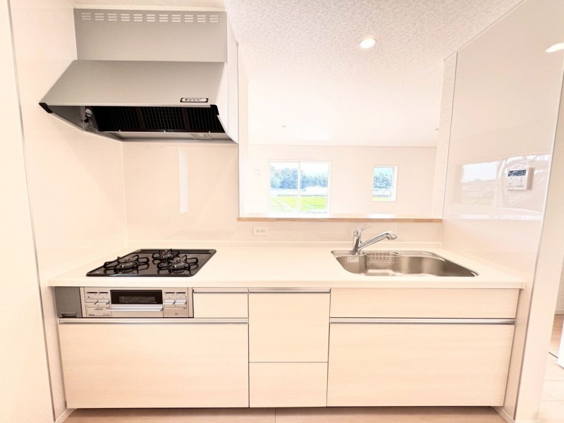- システムキッチン、カウンターキッチン、シャンプードレッサー、洗浄便座、浴室乾燥機、複層ガラス、モニタ付インターホン、駐車場2台分、床下収納、トイレ2箇所、納戸