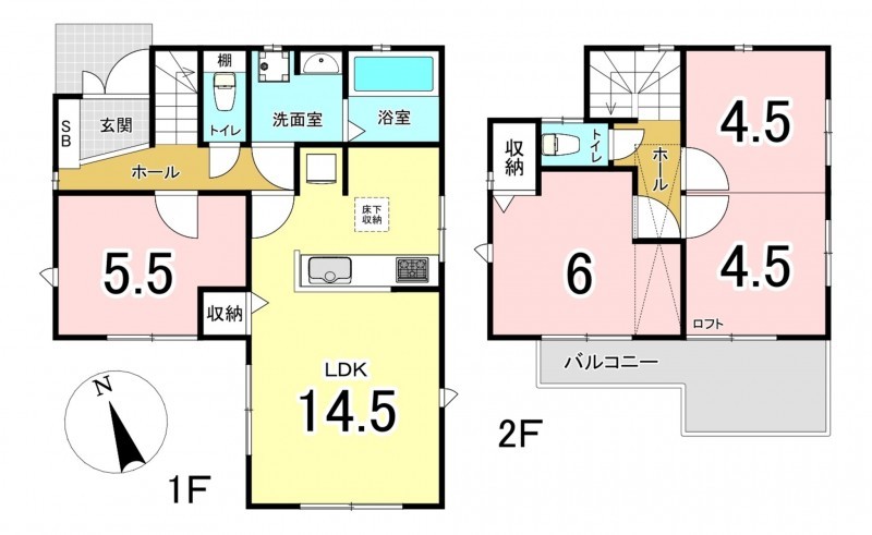 - システムキッチン、カウンターキッチン、ロフト、駐車場2台分、床下収納、トイレ2箇所、エアコン
