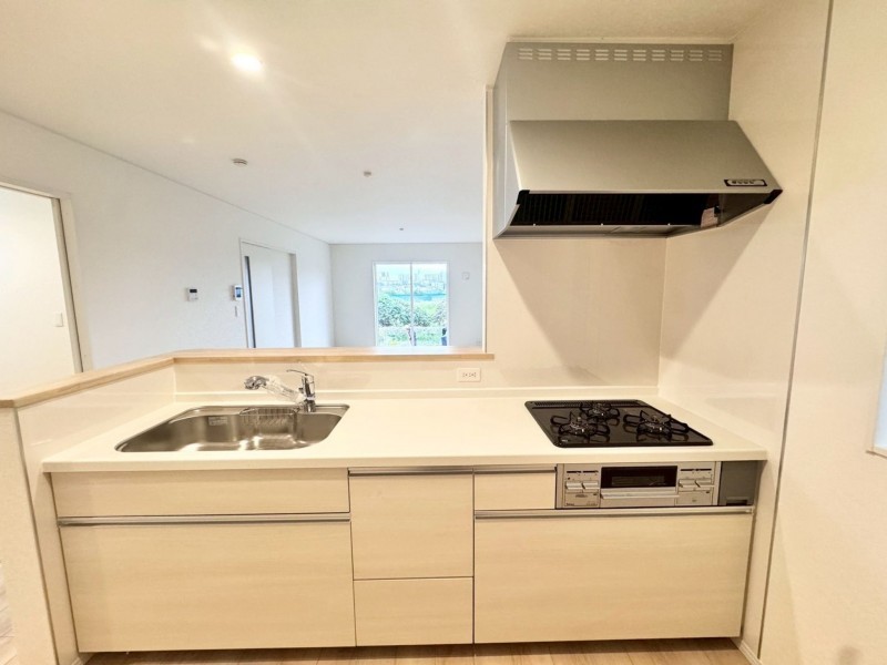- システムキッチン、カウンターキッチン、シャンプードレッサー、洗浄便座、追い焚き、複層ガラス、モニタ付インターホン、駐車場2台分、駐車場3台分、床下収納、トイレ2箇所、パントリー