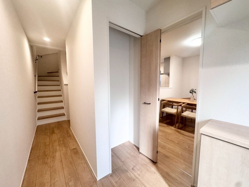 - システムキッチン、カウンターキッチン、食器洗浄乾燥機、洗浄便座、浴室乾燥機、複層ガラス、ウォークインクローゼット、モニタ付インターホン、駐車場2台分、床下収納、トイレ2箇所、パントリー
