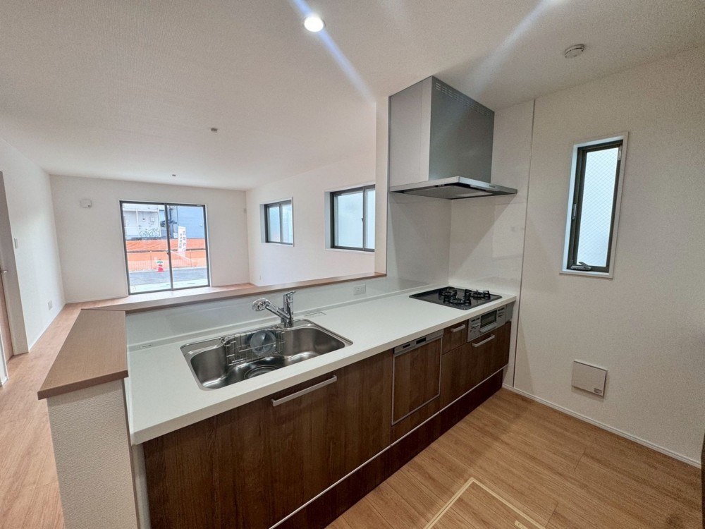 - システムキッチン、カウンターキッチン、食器洗浄乾燥機、シャンプードレッサー、洗浄便座、駐車場2台分、トイレ2箇所、シューズインクローゼット、パントリー