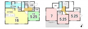 - システムキッチン、カウンターキッチン、食器洗浄乾燥機、シャンプードレッサー、洗浄便座、浴室乾燥機、追い焚き、複層ガラス、ウォークインクローゼット、モニタ付インターホン、駐車場2台分、駐車場3台分、床下収納、トイレ2箇所