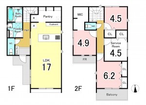 - システムキッチン、カウンターキッチン、食器洗浄乾燥機、洗浄便座、浴室乾燥機、ウォークインクローゼット、モニタ付インターホン、駐車場2台分、トイレ2箇所、パントリー
