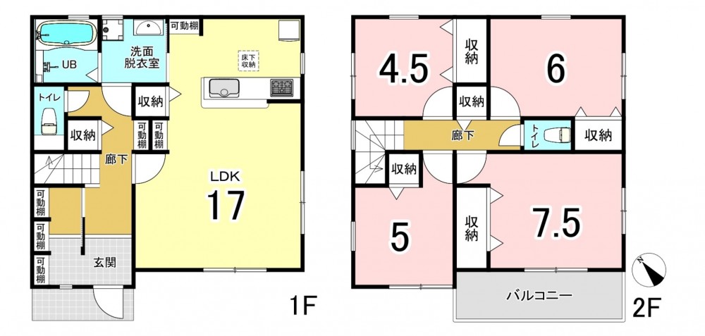 - システムキッチン、カウンターキッチン、洗浄便座、床下収納、トイレ2箇所