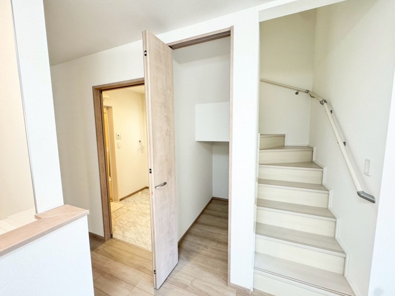 - システムキッチン、カウンターキッチン、食器洗浄乾燥機、シャンプードレッサー、洗浄便座、複層ガラス、モニタ付インターホン、駐車場2台分、床下収納、トイレ2箇所、パントリー