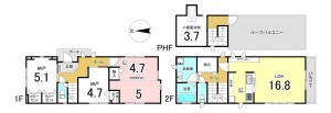 - システムキッチン、カウンターキッチン、食器洗浄乾燥機、オール電化、浴室乾燥機、追い焚き、ルーフバルコニー、床下収納、トイレ2箇所、屋根裏収納、屋上