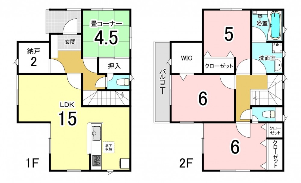 - カウンターキッチン、ウォークインクローゼット、床下収納、トイレ2箇所、納戸