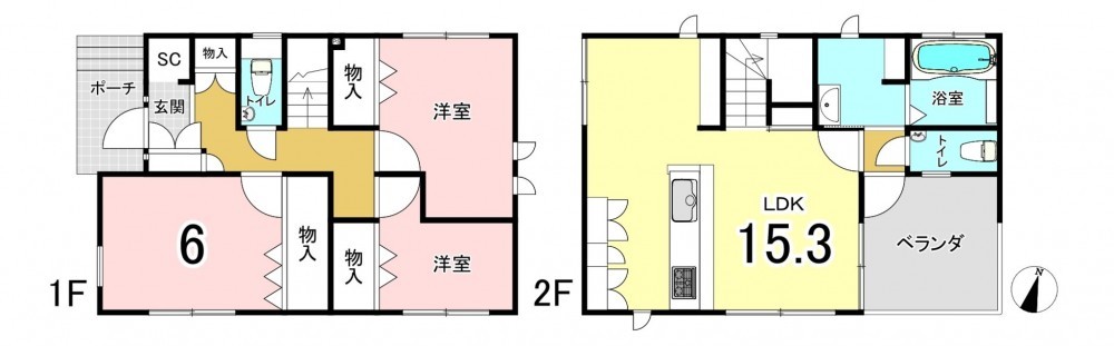 ※1階洋室は合計9.0帖の1室を2室へ隔てています。なお、各部屋の面積詳細は不明です。