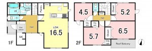 - システムキッチン、カウンターキッチン、洗浄便座、浴室乾燥機、複層ガラス、ルーフバルコニー、モニタ付インターホン、駐車場2台分、床下収納、トイレ2箇所、シューズインクローゼット、パントリー
