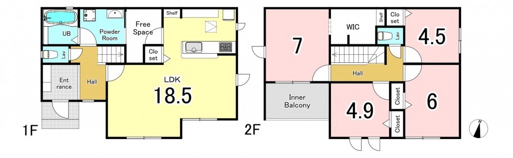 - 延床面積にインナーバルコニー約5.79㎡含む。