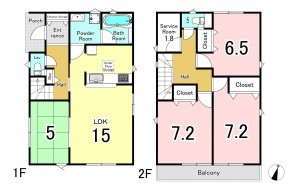 - システムキッチン、カウンターキッチン、シャンプードレッサー、洗浄便座、浴室乾燥機、複層ガラス、モニタ付インターホン、駐車場2台分、床下収納、トイレ2箇所、納戸