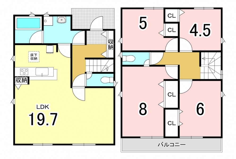 - システムキッチン、カウンターキッチン、浴室乾燥機、ウォークインクローゼット、駐車場2台分、駐車場3台分、床下収納