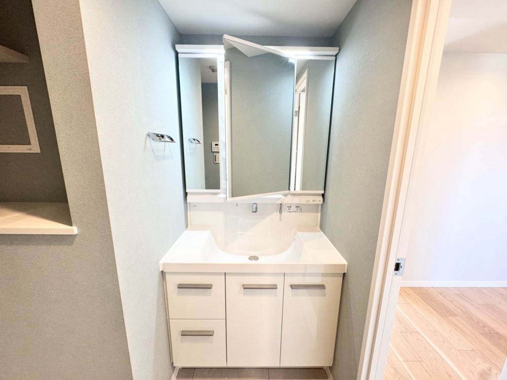 【交換】システムキッチン、洗面化粧台、トイレ(温水洗浄機能付)、フローリング、照明器具(LED)、建具・シューズボックス、給湯器、給排水管、TVモニター付インターフォン